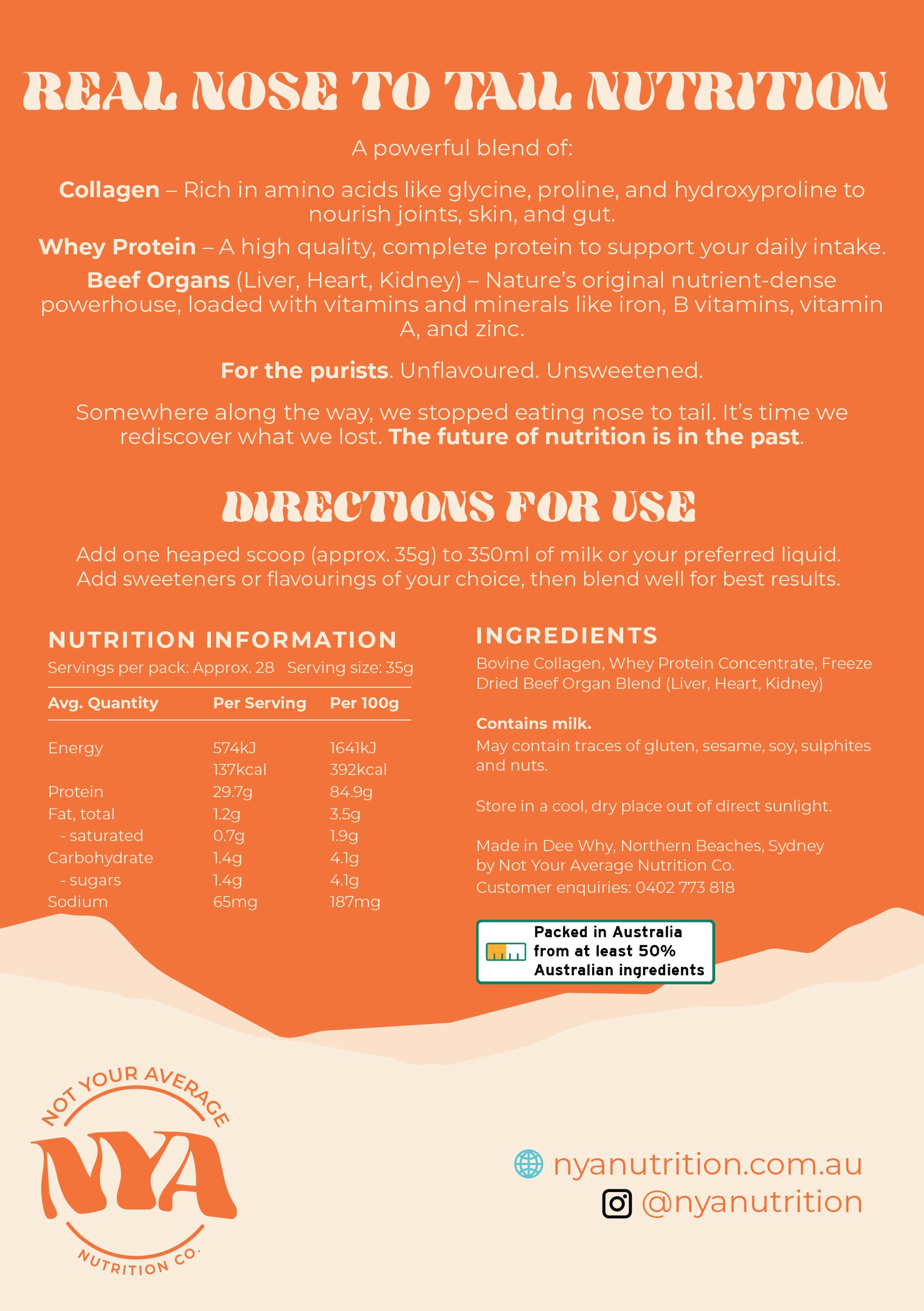 Beef Organs (Liver, Heart, Kidney) – Nature’s original nutrient-dense powerhouse, loaded with vitamins and minerals like iron, B vitamins, vitamin A, and zinc.