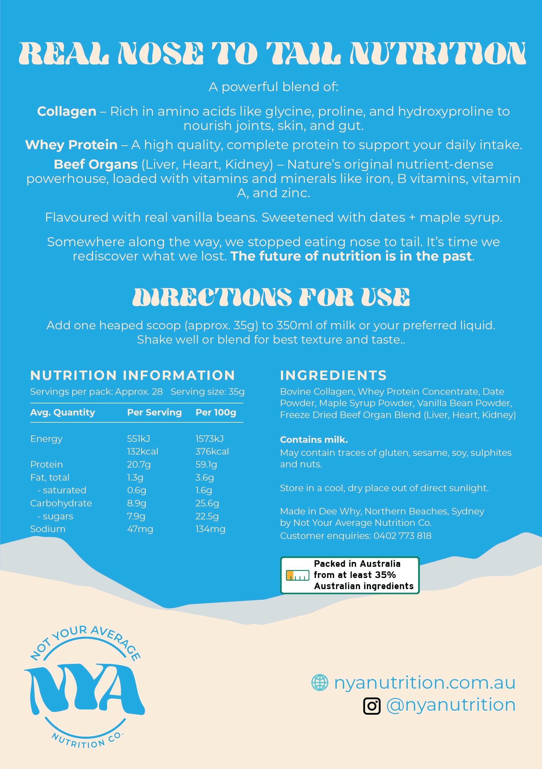 I am so happy with the product I received. I’ve been searching for something like this for so long and will definitely be returning for some more nose to tail and whey.